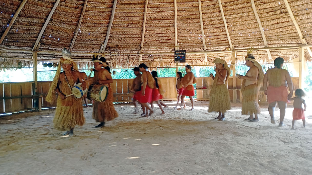 Enjoy a delicious local Amazonian buffet lunch at a jungle lodge before visiting a Yagua Indigenous community, where you will learn about their culture, traditional clothing, dances, and ancestral worldview.