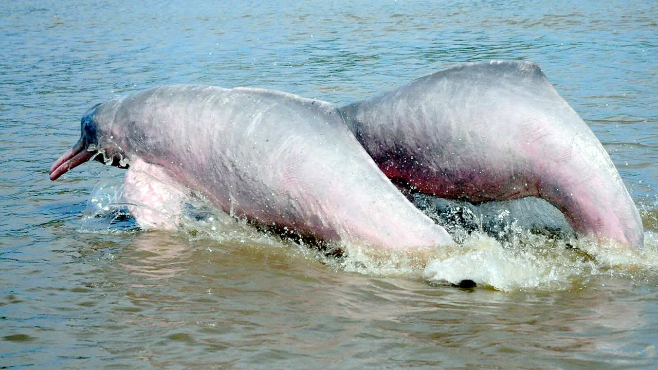 See the two rivers meet and spot pink & grey dolphins.